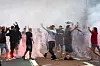 Schon vor der Partie zeigten sich einige AaB-Anhänger aggressiv. Die Polizei schritt zu diesem Zeitpunkt noch nicht ein.