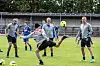 Munteres Spielchen beim Trainerstab zum Trainings-Auftakt : die Assistenztrainer Simon Poulsen und Niels Lodberg sowie Cheftrainer Glen Riddersholm und Torwarttrainer Toivo Vadum.