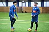 Pierre Kanstrup (links) beim Trainingsauftakt im Gespräch mit Johan Absalonsen.