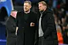 En skulderskadet Kasper Schmeichel har i denne uge set til fra sidelinjen med sin far, Peter Schmeichel, i Champions League-kampene.