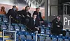 Nishant Tella und Andrew Ramsey neben SønderjyskE-Direktor Klaus Rasmussen auf der Tribüne im Sydbank Park.