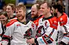 Oskar Drugge (links) und Julian Jakobsen feiern den Gewinn der dänischen Eishockey-Meisterschaft 2023 mit den Aalborg Pirates.
