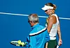 Caroline Wozniacki hört ihrem Vater Piotr während des Trainings aufmerksam zu.