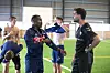Athletiktrainer Yannick Durand im Gespräch mit Rilwan Hassan nach der ersten Trainingseinheit der Saisonvorbereitung.