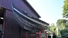 Hinter einer Halle steht die „Haithabu“ auf dem Werftgelände von Henning Mittelmann. Das Wikingerschiff war der Botschafter Schleswig-Holsteins auf der Weltausstellung Expo 2000 in Hannover.