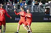 Es ist Mittwochabend, 19.35 Uhr. Im Rhein-Neckar-Stadion in Mannheim stehen Hunderte Fans und Spieler verschiedenster Nationen frenetisch jubelnd und klatschend in Richtung der dänischen Spieler auf der Haupttribüne. Unten auf dem Rasen klatscht sich die dänische Mannschaft mit strahlenden Gesichtern gegenseitig ab, während auf der kleinen Nebentribüne die österreichischen Anhängerinnen und Anhänger verhalten applaudieren.