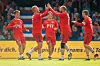 Trotz Niederlage erhält das dänische Team anhaltenden Beifall für ein irres Faustballmatch, in dem die Nordschleswiger abermals alle überraschen konnten. „Ich kann nicht in Worte fassen, wie stolz ich auf diese Mannschaft bin. Was die Jungs heute auf den Platz gebracht haben, war phänomenal“, so Trainer Diedrichsen. Sein Co-Trainer Nielsen gesteht sogar: „Einige Male hätte ich fast angefangen, vor Freude zu weinen, angesichts der Bälle, die die Jungs geholt haben.“
