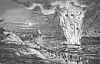 Die Explosion des dänischen Linienschiffs „Christian VIII“ vor Eckernförde am 5. April 1849 in einem Holzstich der „Illustrierten Zeitung“ vom 21. April 1849. Am 1. April 1925 wird berichtet, dass der wohl letzte Teilnehmer und Beobachter der Explosion von 1849 verstorben ist. Ein Zeichner war damals nicht zugegen, das Schiff ist der besseren Anschaulichkeit auf dem Holzstich unmittelbar an die Küste herangerückt.Foto: Österreichische Nationalbibliothek, Wien