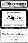Zwischen Bienenhonig und Grenzkampf-Schrift wird für den Film „Mignon“ geworben, der im Sonderburger Filmtheater „Kosmorama“ gegeben wurde. Der Film wurde auch in anderen Kinos Nordschleswigs vorgeführt. Der Stoff war, wie der Name bereits sagt und die Anzeige nochmals verdeutlicht, der Gestalt der Mignon aus Goethes „Wilhelm Meister“ nachempfunden. Regie führte in Berlin, wo der Stummfilm entstand, der Däne Preben J. Rist (1885-1967). Viele dänische Fimleute arbeiteten damals in Deutschland, namentlich in Berlin. Nach der Stummfilm-Zeit, die in unserem Chronik-Jahr 1923 gerade zu Ende ging, kehrte Rist nach Kopenhagen zurück und drehte keine Filme mehr. Das Drehbuch zu „Mignon“ stammte von der deutschen Trivialautorin, Übersetzerin (auch aus dem Dänischen) und Karl-May-Enthusiastin Marie Louise Droop (1890-1959). Dutzende Drehbücher entflossen ihrer Feder (Die Lieblingsfrau des Maharadschas und Ähnliches.