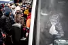 Flüchtlinge warten am Dienstag, 8. März 2022, auf ihren Abtransport vom Supermarkt Tesco in Przemysl in Polen. Die vielen Menschen belagern Einrichtungen wie Sporthallen und Einkaufszentren. Im örtlichen Einkaufszentrum schlafen Menschen auf dem Boden von Geschäften.