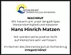 Nachruf: Hans Hinrich Matzen