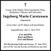 Todesanzeige: Ingeborg Marie Carstensen, 1934-2021