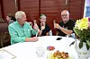 Knud Erich Jensen stößt mit dem Ehepaar Ruth Mikkelsen und Palle Guldbrandsen an.