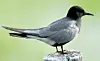 Die Trauerseeschwalben weisen während der Brutzeit ein teilweise schwarzes Gefieder auf.