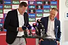 Jakob Michelsen (rechts) wird von DBU-Fußballdirektor Peter Møller als neuer Frauen-Nationaltrainer vorgestellt.