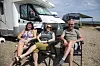 Zwischen den Wohnmobilen ist ein französisches Kennzeichen zu sehen. Ob sie in Apenrade die Tour de France sehen wollen, so unsere Frage an das Paar, das im Innenraum des Fahrzeugs sitzt.