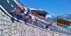 Ein ganz außergewöhnlicher Einfall: In einer Serpentinenkurve bei Verbier in der Schweiz haben 2009 oberhalb der Stützmauer sehr kreative Menschen Momente eines Rennens sehr humorvoll eingefangen.