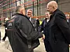 Dänemarks Wirtschaftsminister Morten Bødskov (Soz., Mitte) und Haderslebens Bürgermeister Mads Skau (Venstre, rechts) im Gespräch mit Bürgern beim ersten Spatenstich am vergangenen Montag