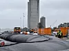 Die sogenannten Watertubes wurden rings um den Apenrader Hafen ausgelegt. Die Sperre hielt bei dem Jahrhunderthochwasser im Oktober 2023 dem Druck des Wassers jedoch nicht stand und riss. So wurden Teile der Innenstadt und der umliegenden Gebiete am Straßenzug Kilen überschwemmt (Archivfoto).