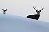 Ein Rotwildpaar steht im Wildgehege auf dem 1064 Meter hohen Pfänder oberhalb von Bregenz (Vorarlberg).