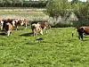 Die Störche von Saxburg fühlen sich auf der Viehweide pudelwohl. In den Fußspuren der Rinder finden sie ihr Futter.