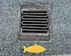 Das Wasser, das in diesen Gully fließt, landet nicht im Klärwerk, sondern im nächsten Bach. Daran soll der gelbe Fisch erinnern.