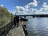In Ruttebüll wurden die Boote am Anleger gut festgezurrt, denn bei geöffneten Schleusentüren an der Wiedaumündung strömte das Wasser lebhaft Richtung Wattenmeer.
