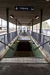 Wer vom Bahnsteig zum Bahnhofsgebäude und zum Ausgang möchte, muss diese Stufen hinunter.