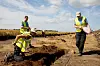 Das Grabungsteam vom Museum Sønderjylland bei Kassö: Leif Christensen, Martin Pedersen, Hans Christian Petersen und Katrine Moberg Riis (v. l.)