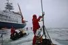 Auch andere Tiere kamen zu Besuch. Christian Haas, Fahrtleiter der zweiten Etappe, erinnert sich: „Ein kleiner, niedlicher Polarfuchs hätte fast das ganze Projekt zum Scheitern gebracht, weil er mit Vorliebe Strom- und Datenkabel auf dem Eis angeknabbert hat und sich nicht vertreiben lassen wollte.“