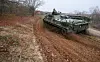 Ein Zivilpanzer verdichtet in Sielmanns Naturlandschaft Döberitzer Heide Trassen, damit sich dort Pfützen für Urzeitkrebse bilden können.